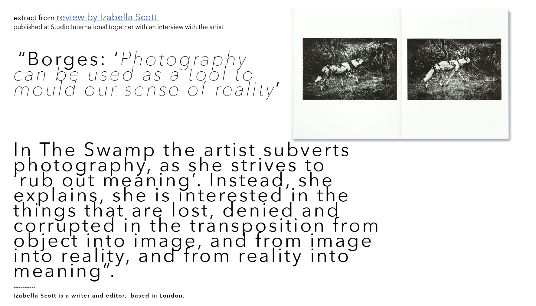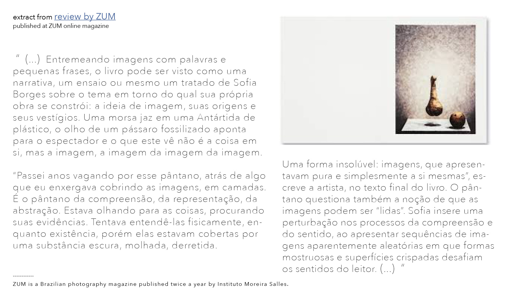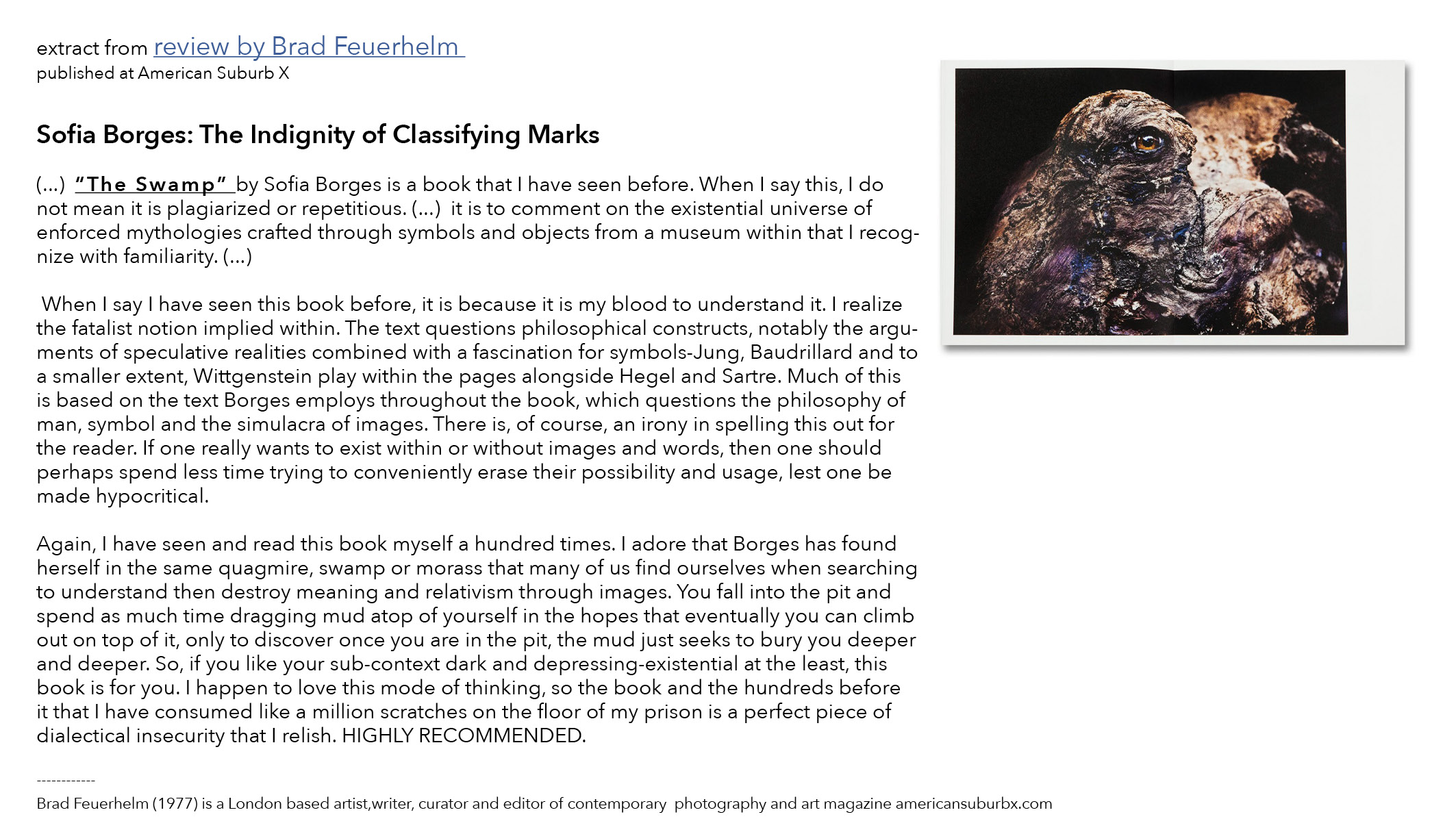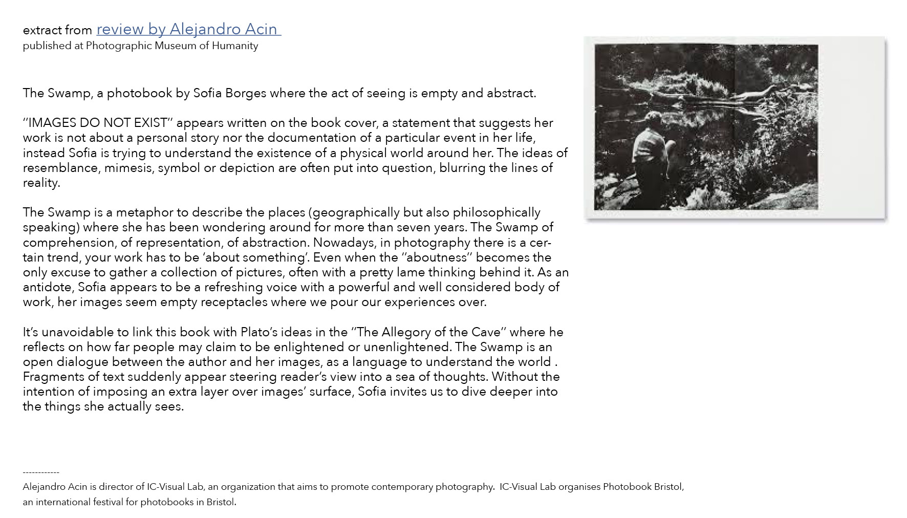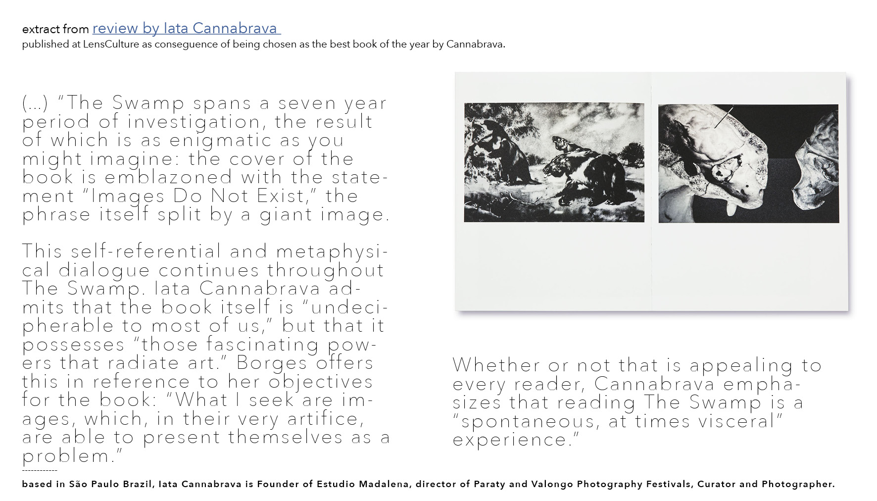 Along the year The Swamp was again chosen as one of the best books of the year by LensCulture, ZUM Magazine and PhotoBristol Photography Festival and received numerous spontaneous reviews from institutions and specialized magazines, such as: